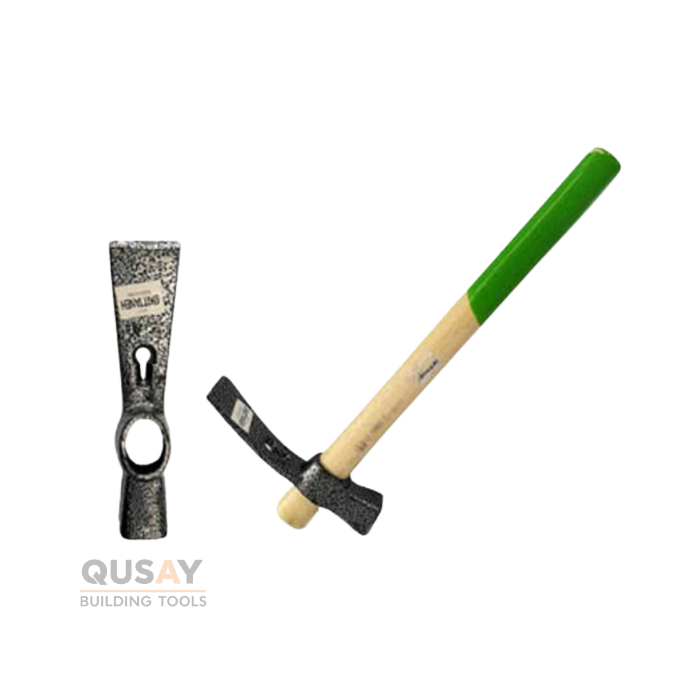 طرف مسطح وعريض (Adze / Hoe head): يستخدم لتهوية التربة، الحفر، وإزالة الأعشاب الضارة.