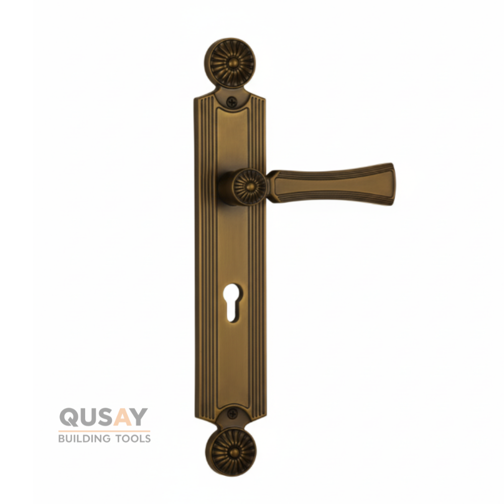 اللون: برونزي مطفي (Matte Bronze)، لون دافئ يبرز التفاصيل المحفورة ويقاوم ظهور بصمات الأصابع، مما يحافظ على نظافة المقبض دائماً.