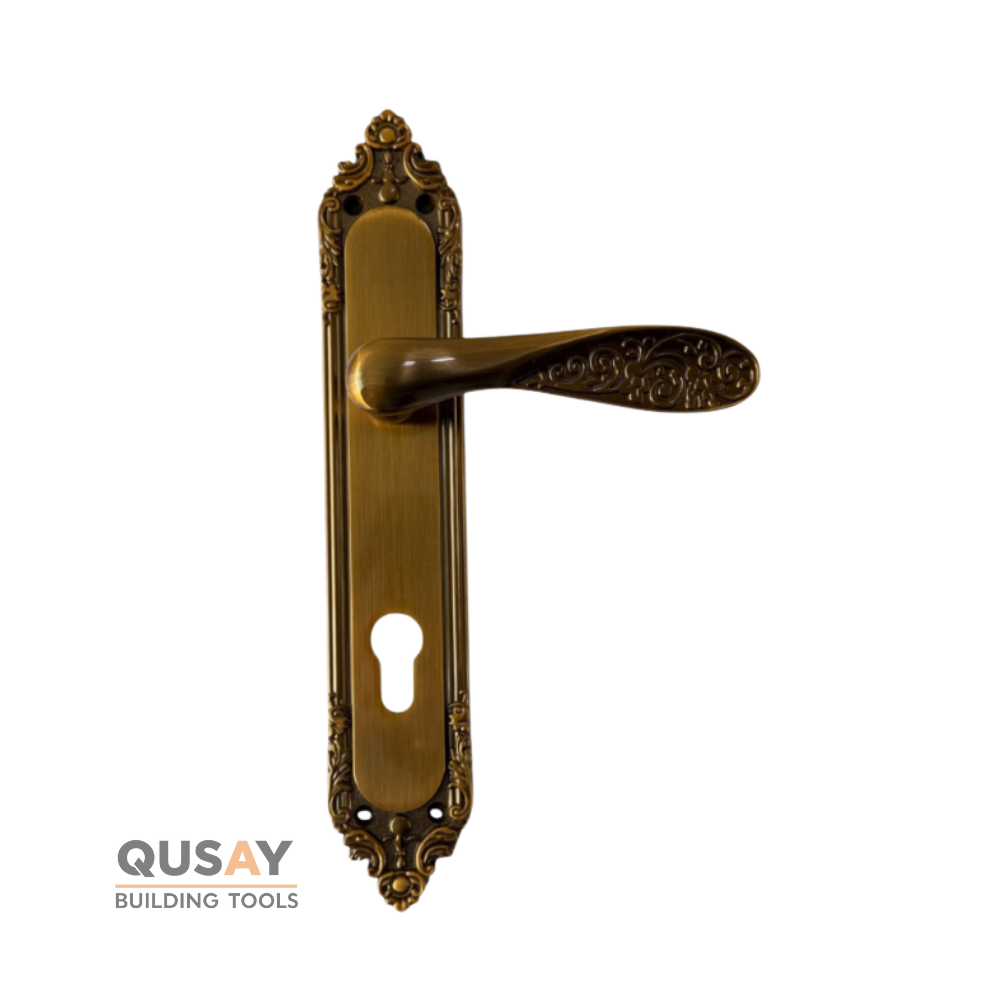 هو طقم مقبض باب على لوحة طويلة (Lever Handle on Plate) بتصميم كلاسيكي أو عتيق (Antique Style).