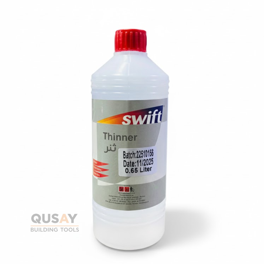 تنر “سويفت ثينر” (Swift Thinner) هو منتج مذيب يستخدم في تخفيف الدهانات والورنيش والطلاءات الصناعية. يأتي المنتج في العبوة الموضحة بحجم 0.65 لتر، وتُستخدم أنواع التنر من علامة “سويفت” (Swift Paints) في مجالات مختلفة مثل دهانات السيارات أو الدهانات الصناعية والأخشاب.