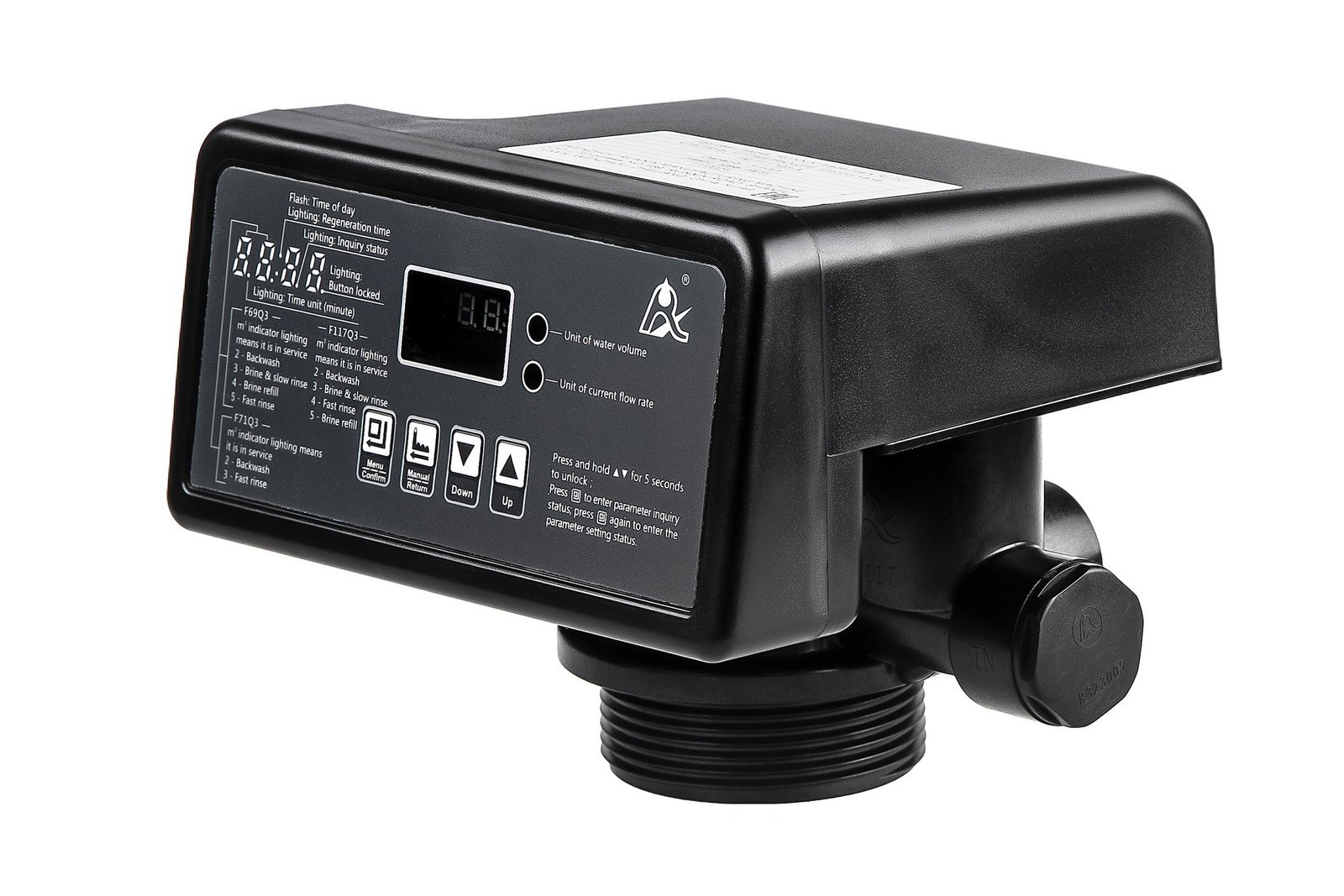 الوظيفة: تتحكم هذه الوحدة الآلية في عمليات أنظمة تنقية أو تحلية المياه، وتحديداً في أنظمة تليين المياه (السوفتنر) أو أنظمة الترشيح.