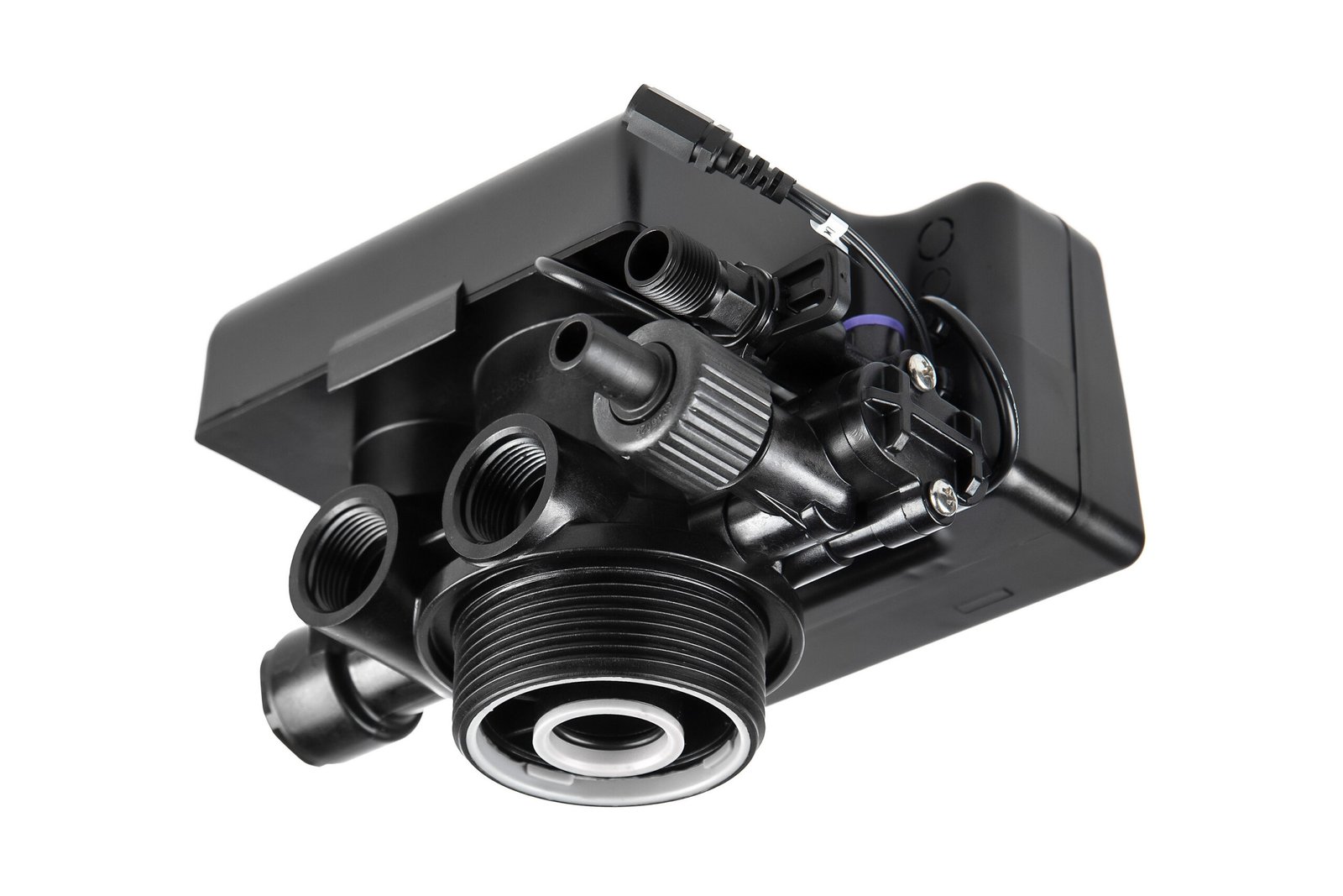 آلية العمل: تقوم بجدولة وتنفيذ دورات الغسيل العكسي والشطف وإعادة تعبئة المحلول الملحي (التجديد) تلقائياً، إما بناءً على الوقت أو بناءً على حجم المياه المستخدم