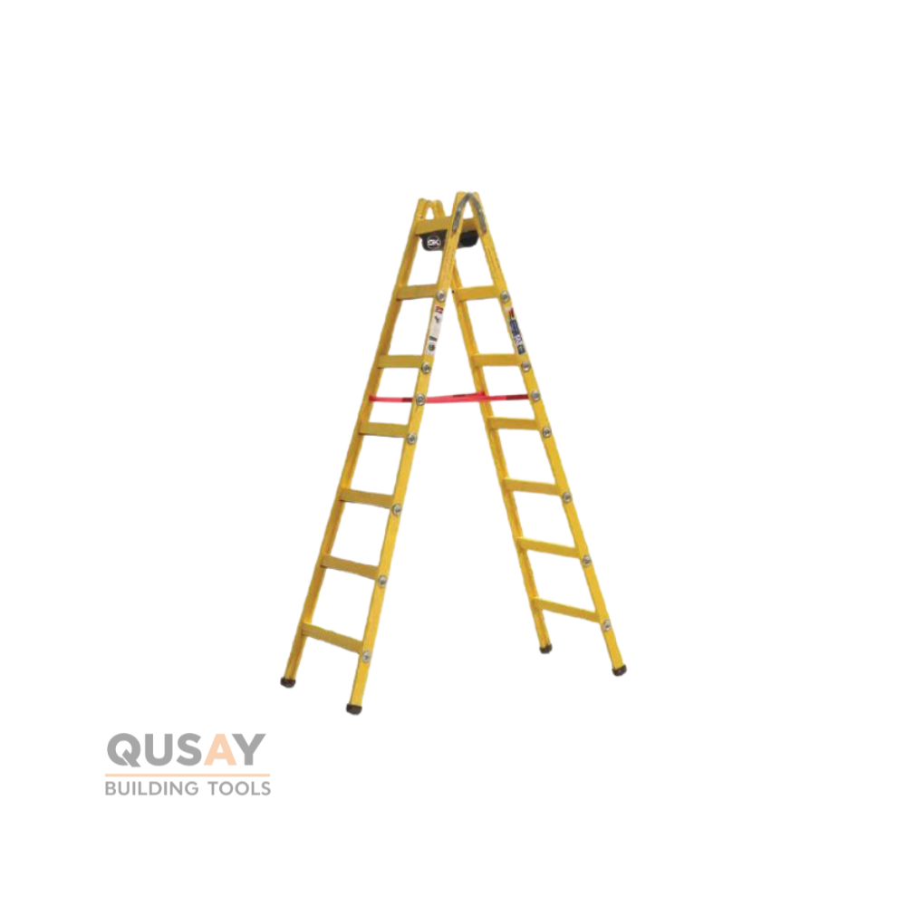 نظام التدعيم: مزود بمفصلات معدنية علوية قوية تسمح بفتح وإغلاق السلم بسلاسة، بالإضافة إلى حبال أمان جانبية (أحزمة) تمنع انزلاق القوائم وتضمن بقاء السلم في زاوية فتح آمنة أثناء العمل.