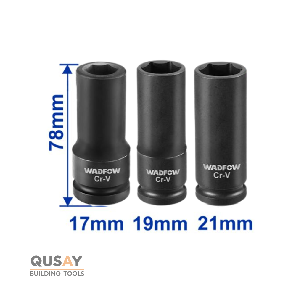 - الطول: جميع اللقم طويلة بعمق 78 ملم، مصممة للوصول إلى صواميل العجلات الغائرة والمثبتات في الأماكن الضيقة.