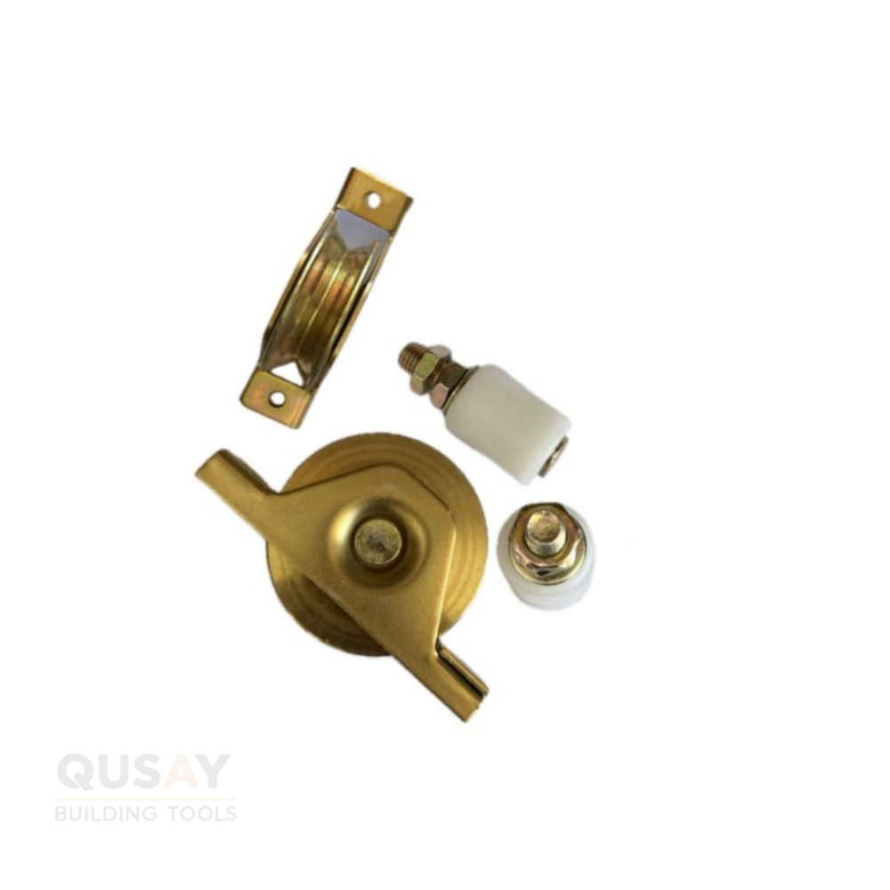 طقم متكامل (4 قطع): يحتوي الطقم على عجلتين سحاب أساسيتين لحمل الوزن و بلحتين (بكرات توجيه) لضمان استقامة الباب أثناء الحركة.