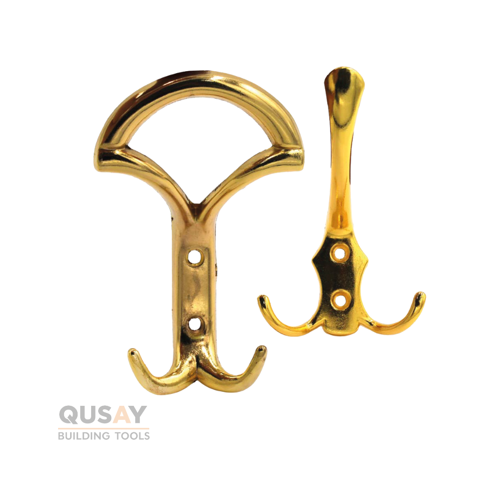 علاقة حائط مزدوجة أو خطاف معطف نحاسي ذهبي. وهي علاقة تُثبت على الحائط أو خلف الأبواب باستخدام مسامير لتوفير حل تنظيم عملي وأنيق.
