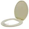 غطاء المرحاض في الصورة هو غطاء مقعد مرحاض بـ إغلاق ناعم (هيدروليكي) ولون بيج. يتميز هذا النوع من الأغطية بآلية إغلاق بطيئة وهادئة تمنع الارتطام أو الضوضاء.