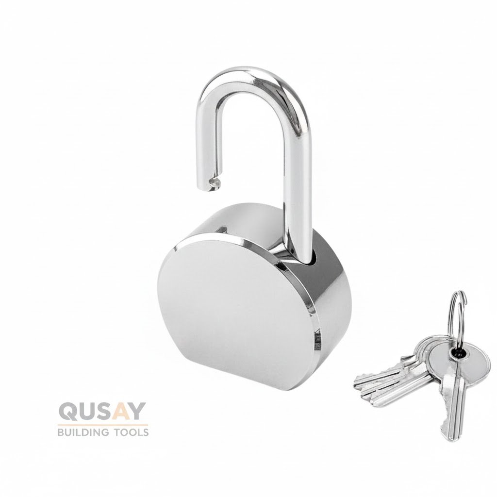 قفل دائري من الفولاذ (Round Steel Padlock) بلمسة نهائية من الكروم اللامع، يتميز هذا القفل بتصميم يوفر حماية عالية.