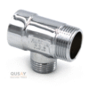 وصلة حرف T نحاسية مطلية بالكروم مصممة لتقسيم تدفق الماء في أنظمة السباكة المنزلية. تُعرف أيضاً بـ قسام شطاف / محول ثلاثي الاتجاهات.
