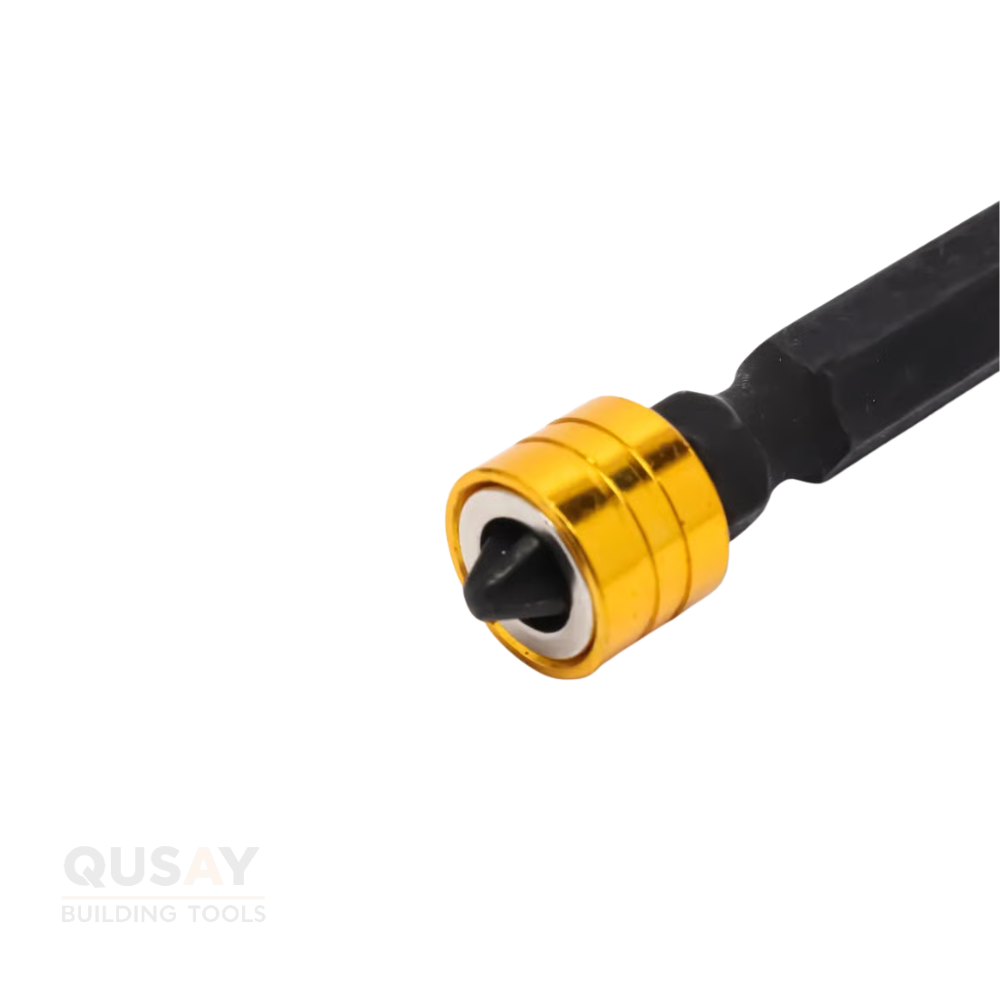 حلقة مغناطيسية ذهبية: مزودة بمغناطيس قوي جداً (الحلقة الذهبية) يقوم بجذب البربي وتقبيته بإحكام على رأس اللقمة، مما يمنع سقوط البراغي ويسمح لك بالعمل بيد واحدة في الأماكن الصعبة.