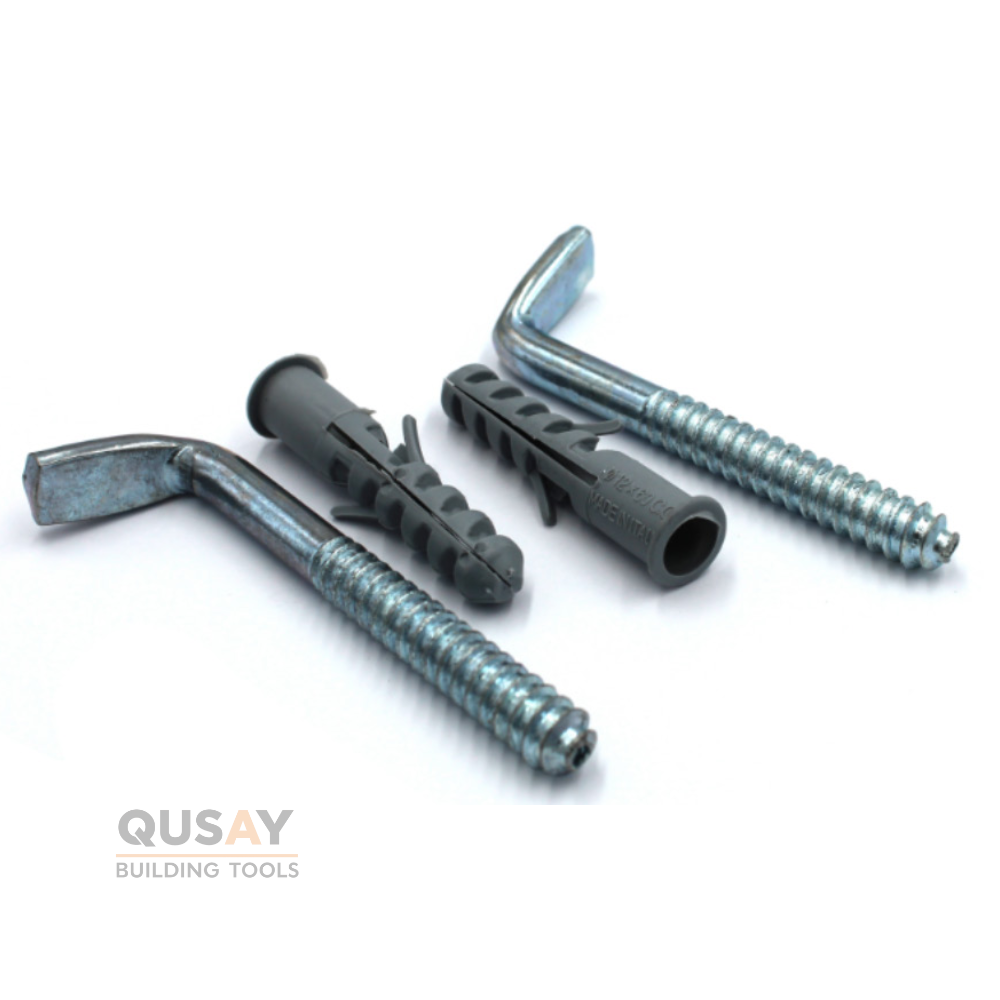- براغي خطافية (L-Hook Bolts): مسامير معدنية قوية على شكل حرف “L” مصممة لحمل وزن السخان.