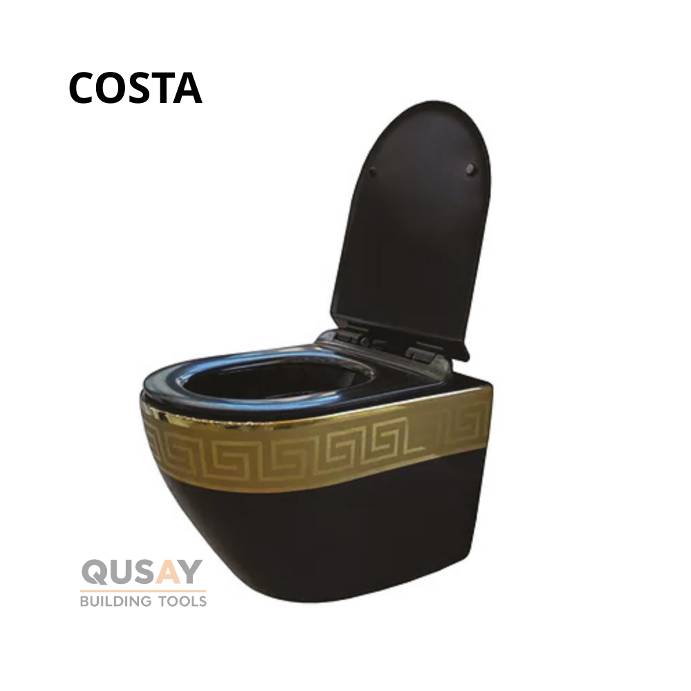 مرحاض COSTA معلق أسود مذهب موديل 1071 | فخامة ملكية وتصميم عصري