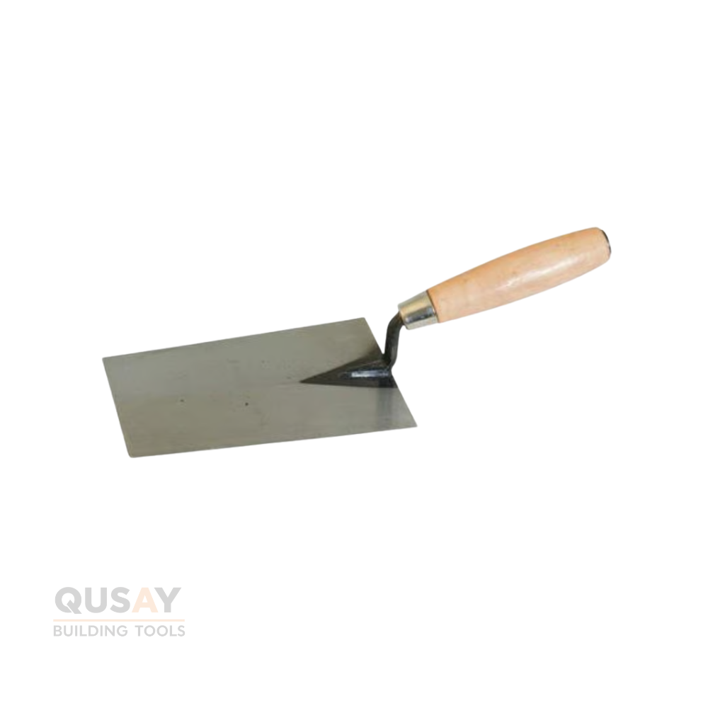 نصل مربع واسع: يتميز بتصميم مربع عريض يوفر مساحة سطح كبيرة لحمل وتسطيح المونة الأسمنتية، مما يجعله مثاليًا لأعمال بناء الجدران وتجهيز طبقات القصارة.