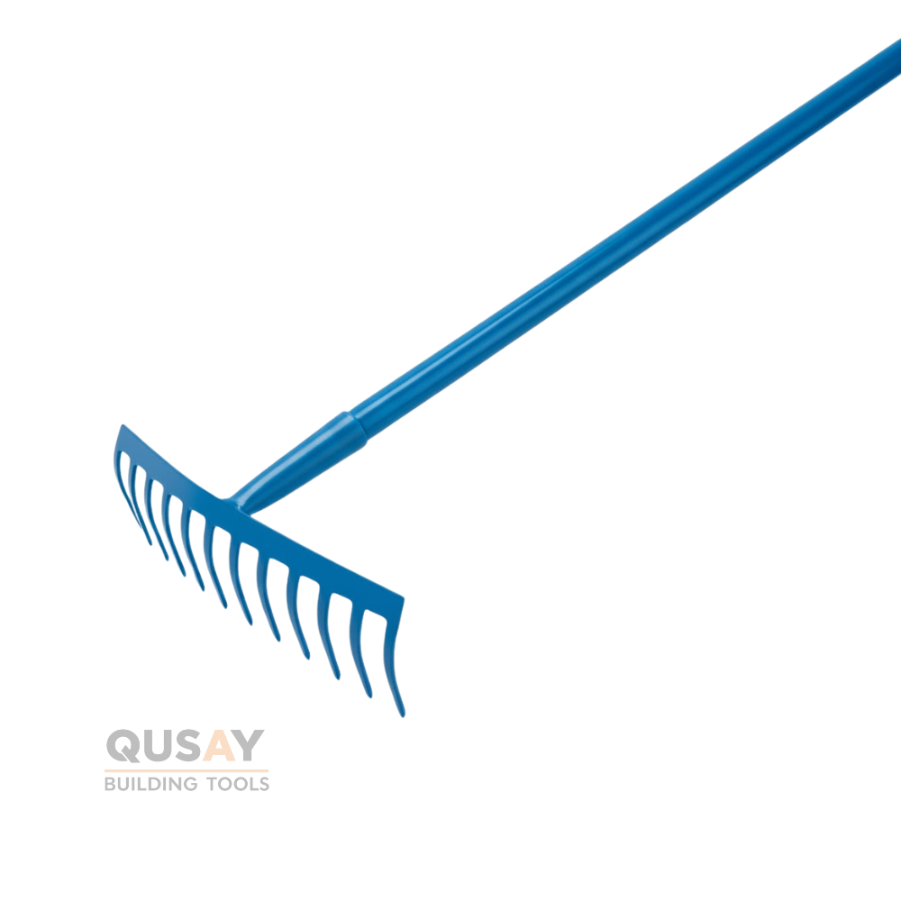 - المادة: الشفرة أو الأسنان والمقبض مصنوعان بالكامل من الفولاذ أو الحديد المتين. يتم طلاؤها غالباً بدهان مسحوق (Powder coating) أو الجلفنة لمقاومة الصدأ والتآكل.