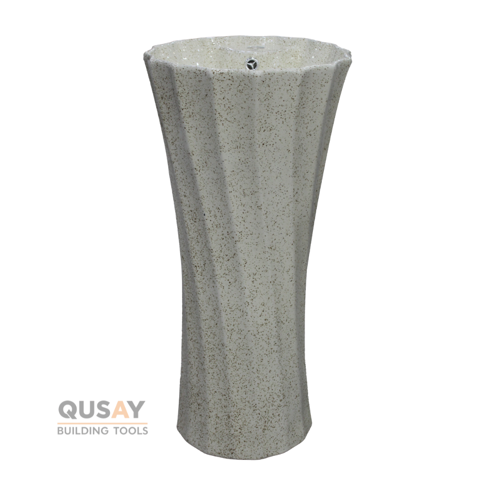 - تصميم “برميل” متكامل: تتميز المغسلة بهيكل أسطواني انسيابي (قطعة واحدة) يمتد من الأرض حتى الحوض، مما يمنحها مظهراً ديكورياً فاخراً يغني عن استخدام الخزائن السفلية.