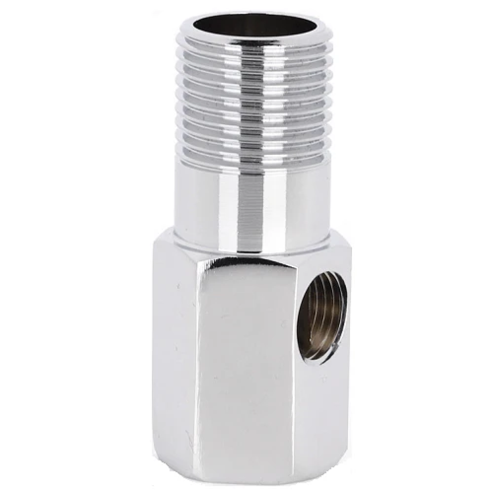 تصميم هندسي متعدد الوظائف: مزود بمدخل قلاووظ (سن ذكري) ومخرج جانبي بفتحة لولبية أنثى، مما يجعله مثالياً كوصلة تحويل أو فرعية.